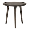 FSC-certifierat Accent soffbord från Mater med en skulptural, handgjord estetik med en rund bordsskiva med rundade kanter och tre smala ben. Bordet kan stå för sig själv eller paras ihop med andra bord för en annan look.