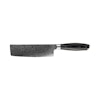 Akio Nakiri är kniven som gör grönsakshanteringen till ett rent nöje. Den skär rakt igenom rotfrukter, örter och grönsaker med en lätthet som känns direkt i handen, samtidigt som det vackra damaskusmönstret berättar om hantverket bakom. Det rundade handtaget i pakkaträ ger trygg stabilitet, oavsett om du hackar snabbt eller finjusterar dina snitt. En elegant och sylvass följeslagare som förvandlar vardagsmatlagningen till ett mer lustfyllt, precist och inspirerande moment.