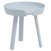Around soffbord från Muuto med en stilren, nätt design med en skandinavisk känsla. Det har en toppskiva i fanér med en tunn ram runt om för att addera en extra dimension till designen. Tre stabila ben i massivt trä med en lackad finish i olika färger att välja mellan.
