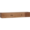 ARRAY sideboard från Woud med en vacker, väggmonterad design i fanér för snygg förvaring. Den har rena linjer med karakteristiska ribbor på ena sidan som på ett vackert sätt reflekterar ljuset och generöst förvaringsutrymme med mjukstängande dörrar perfekt för vardagsrummet eller sovrummet.