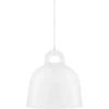 Bell pendel från Normann Copenhagen med en industriell design i aluminium och en enkel klockform. Den har en matt yta med en vit insida för att reflektera ljuset vackert. Produkten är vacker som den är men även fin att kombinera flera stycken i ett kluster.