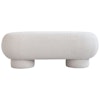 Denna bänk / fotpall är designad av den begåvade duon Kristian Sofus Hansen & Tommy Hyldahl och kombinerar både stil och komfort. Den benvita boucléklädseln ger en varm och ombonad känsla till vardagsrummet och passar perfekt för mysiga läshörnor, som extra sittplats eller att vila fötterna på.