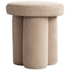 Det roliga slutar inte vid designen. Pallen är klädd i naturligt fårskinn eller kritfärgat bomulls- och linnetyg och ger en lugnande känsla, perfekt för att varva ner efter långa, hektiska dagar. De tre runda benen ger stabilitet, medan den runda sitsen med plysch ger en inbjudande lyx.
