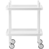 Block bord är tillverkat av målad ask och pulverlackad metall. Hjulen är färgade i samma nyans som hyllplanen. Den svarta nylonringen runt varje hjul ger bordet ett bra grepp och stabila egenskaper.