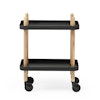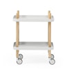 Block Bord från Normann Copenhagen är designat av Simon Legald. Ett praktiskt litet rullbord i stilren nordisk design. Hyllan har två hyllplan som som kan lastas med en maxvikt på 10kg per hylla. Använd den som sidobord till soffan, sängen, i barnrummet eller som drinkvagn. Den är lätt att flytta runt tack vare träpinnarna som sticker upp på ovansidan och hjulen går praktiskt att snurra runt 360 grader. En modern variant av den klassiska tevagnen.