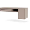 Bureau skrivbord från Montana med en stilren, funktionell design perfekt för det moderna hemmakontoret. Det är vägghängt och gjort av lackad MDF och har två avtagbara brickor på ena sidan och ett rymligt skåp på andra sidan. En praktisk design som ger mer utrymme för benen.