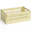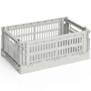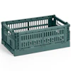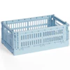 Colour Crate från HAY är en lekfull och funktionell förvaringslåda med ett distinkt perforerat mönster. Den finns i flera färger och storlekar och kan staplas i olika kombinationer – perfekt för att skapa ordning i allt från kök och badrum till kontor och garderob. Med sin lätta men tåliga design passar den lika bra i skåp som på öppna hyllor eller bord.