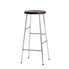 Cornet barstol från Hay, formgiven av Jonas Trampdach. En klassisk barstol med en rund sits i massiv ek och ett innovativt underrede i kromat stål. Tillsammans skapar materialvalen en industriell och modern look som passar in i många sammanhang. Inspirationen till barstolens fyra stag som är placerade i olika höjder kommer från cykelställ.