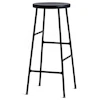 Cornet barstol från Hay, formgiven av Jonas Trampdach. En klassisk barstol med en rund sits i massiv ek och ett innovativt underrede i svart pulverlackat stål.