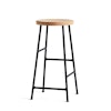 Cornet barstol från Hay, formgiven av Jonas Trampdach. En klassisk barstol med en rund sits i massiv ek och ett innovativt underrede i svart pulverlackat stål. Tillsammans skapar materialvalen en industriell och modern look som passar in i många sammanhang. Inspirationen till barstolens fyra stag som är placerade i olika höjder kommer från cykelställ.