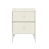 Drift sidobord från Montana med en nätt, stilren design perfekt för hallen eller som nattduksbord i sovrummet. Det är gjort av lackerad MDF med två lådor för enkel förvaring och metallben med ett elegant uttryck. Välj mellan olika färger.