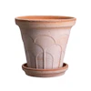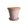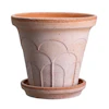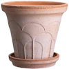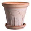 Den har en vacker relief av liljor och palmblad och ett djupt, tillhörande fat som ger optimala förutsättningar för växten. En tidlös och användbar kruka som passar lika bra inomhus som på balkongen eller terrassen.