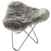 Flying Goose Iceland Pall från Cuero är en snygg pall som hör till den klassiska Butterflyfåtöljen Iceland Mariposa. Den tillverkas i de djupa småländska skogarna där kvalitet och miljötänk är högsta prioritet. Det är gediget hantverk, omsorgsfullt utvalt isländskt lammskinn och extra hårt svenskt stål. Bara ett på hundra får föds naturligt grå på island och det är därför mycket exklusivt. Placera den i hallen när du skall knyta dina skor, som extrastol när ni är många eller som fotpall till fåtöljen. Lammskinnet finns i flera olika färger, korthårigt (Shorn) eller långhårigt (Wild) och med svart eller kromat underrede. I samma modell finns också Pampa Pall som är med italienskt högkvalitativt läder.