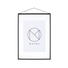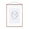 Frame A3 ram från MOEBE med en genomtänkt konstruktion med två delar i akrylglas med fyra lister. Gummibandet både håller ihop ramen och används för att hänga upp ramen på väggen, vilket ger ett estetiskt tilltalande resultat. Konstruktionen gör att ramen kan hängas i båda riktningarna eller till och med ses från båda sidor.