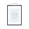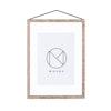 Frame A3 ram från MOEBE med en genomtänkt konstruktion med två delar i akrylglas med fyra lister. Gummibandet både håller ihop ramen och används för att hänga upp ramen på väggen, vilket ger ett estetiskt tilltalande resultat. Konstruktionen gör att ramen kan hängas i båda riktningarna eller till och med ses från båda sidor.