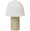 Frill portabel lampa från Ferm Living med en dekorativ, räfflad lampskärm med en cylinderformad fot, ett vackert, diffust ljus och en praktisk, behändig storlek för att enkelt flyttas runt i hemmet.