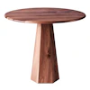 Hexagon matbord från Dusty Deco med ett unikt hexagonformat underrede och en rund bordsskiva i massivt trä med en oljad finish.