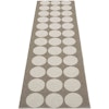 Hugo är en matta från Pappelina med ett prickigt ton i ton-mönster med en vändbar design. Den har ett tidlöst uttryck och är tillverkad av PVC med bra slitstyrka. Perfekt för hallen, köket eller utomhus på terrassen.