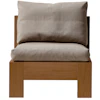 - Loungestol med geometrisk träram och mjuka kuddar.