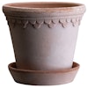 Copenhagen kruka från BERGS POTTER med en rustik, handgjord design i högkvalitativ, italiensk lera med en oglaserad yta och en blekrosa färg. Den har ett medföljande fat med en vattentät behandling i silikon. Välj mellan olika storlekar.
