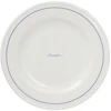 Efterrättstallrik från Lexington i glaserat porslin med repinspirerad struktur och handmålade ränder.