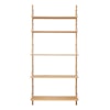 Library hylla 114,8 från FRAMA. Hyllan är en fortsättning på Framas erkända hylldesign. Fäst med solida stålskruvar på skenor i oljad ek kan hyllorna enkelt placeras och omformas på olika sätt för att anpassas till ditt hem. Kommer med fem st hyllplan och en höjd på 185cm