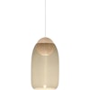 FSC-certifierad Liuku Ball pendel från Mater. Den har en minimalistisk design i lindträ med en rund form och ett nedåtriktat ljus och en oval lampskärm i munblåst glas. CE-märkt. Produkten är vacker som den är men även fin att kombinera flera stycken i ett kluster.