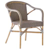 Sitsen och ryggstödet är handvävda av skickliga hantverkare och är noggrant konstruerade på en solid rottingram som ger både komfort och hållbarhet. Stolen har ett stödjande ryggstöd och integrerade armstöd, medan den stapelbara designen ger praktisk funktionalitet för både privata och professionella miljöer.