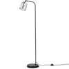Material golvlampa från New Works med en enkel design med vackra, naturliga material. Den har en lampfot i pulverlackerat, svart aluminium med detaljer i stål och en justerbar lampskärm för att styra ljusets riktning. Den har en lång, svart sladd med en fotbrytare. En perfekt detalj för varje rum i ditt hem.