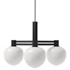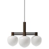 MEMOIR 120 III ljuskrona från LYFA med en modern design med inspiration från den klassiska ljuskronan. Den har tre varsamt formade lampskärmar i opalglas med en linjär struktur i metall med dekorativa detaljer.