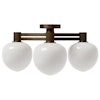 MEMOIR 120 III taklampa från LYFA med en modern design med inspiration från den klassiska ljuskronan. Den har tre varsamt formade lampskärmar i opalglas med en linjär struktur i metall med dekorativa detaljer.
