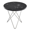 Mini O Table sidobord från OX Denmarq, formgiven av Dennis Marquart. Ett elegant sidobord i lyxig marmor och stål med mjuka och runda former. Bordskivan är tillverkad i vit, grå, brun eller svart marmor medan bordsbenen är tillverkade av rostfritt stål. Tillsammans utgör materialvalen en oslagbar kombination som känns både modern och klassisk på samma gång. Låt sidobordet stå intill soffan i vardagsrummet eller intill ett större bord framför soffan, använd det som sängbord eller låt det bli ett avlastningsbord i hallen.