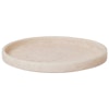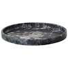 Brickan har en rundad form och mjukar upp sin skulpturala design med ett mjukt, organiskt uttryck. Tillverkad av en hartsblandning med genomskinliga virvlar är ingen bricka den andra lik. Brickan är perfekt att placera på en byrå, ett soffbord eller en badrumshylla och utgör en dekorativ bas för smycken, kosmetika eller andra små föremål samtidigt som den ger rummet en subtil skulptural touch.