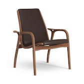 Laminett Fåtölj Läder, Lackerad Valnöt / Mörkbrun