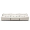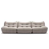 Soffan består av tre moduler – en med armstöd till vänster, en med armstöd till höger och en centralsektion – vilket skapar en balanserad helhet som kombinerar komfort och stil. Den rundade designen ger soffan ett elegant utseende från alla vinklar, oavsett dess placering i rummet. Klädd i ett exklusivt bouclétyg och generöst vadderad, inbjuder MONO både till avkoppling och socialisering. Den flexibla designen gör det lätt att anpassa soffan efter rummets förutsättningar. För att skydda både möbeln och golvet rekommenderas användning av möbelkuddar.