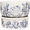Moomin planteringskruka Haru från Moomin Arabia är en elegant växtkruka i blåvitt med ett poetiskt Mumin-motiv inspirerat av Tove Janssons liv och naturen kring Klovharun.
