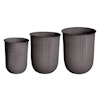 Out Stripe krukor från DBKD med en stilren design i plåt i olika storlekar med vacker, hållbar glasering perfekt för utomhusbruk och dekorativa ränder på utsidan. Välj mellan olika färger.