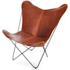 Papillon fåtölj från OX Denmarq, formgiven av Dennis Marquart. Fåtöljen i läder är även känd som den klassiska "Fladdermusfåtöljen" för dess speciella utseende. Fåtöljen blir definitivt ett blickfång i ditt hem som ingen kan motstå, en riktig "snackis" för dess historia. Konstruktionen är enkel och samtidigt elegant – fåtöljen består av en svartlackad stålkonstruktion med en sits i 100 % vegetabiliskt garvat läder med en tjocklek på minst 3 mm. Eftersom läder är ett naturmaterial så kan naturliga brister förekomma. Med tiden gör ljus och användning att lädret får ett djup och lyster i takt med att det åldras. Regelbunden skötsel av lädret rekommenderas. Skyddstassar måste monteras på benen.
