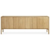 PI skänk från Ethnicraft med en slående, elegant design med vackra detaljer. Den är tillverkad av högkvalitativ ek med en handpolerad yta för en unik och exklusiv finish. Perfekt för vardagsrummet eller hemmakontoret.
