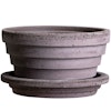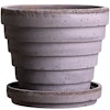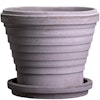 Planet kruka från Bergs Potter med en handgjord design i högkvalitativ terrakotta med ett dekorativt, oregelbundet ringmönster och en fin, oglaserad yta med en grå finish. Den har ett medföljande fat. Blanda olika storlekar, färger och material för att skapa din egen personliga stil.