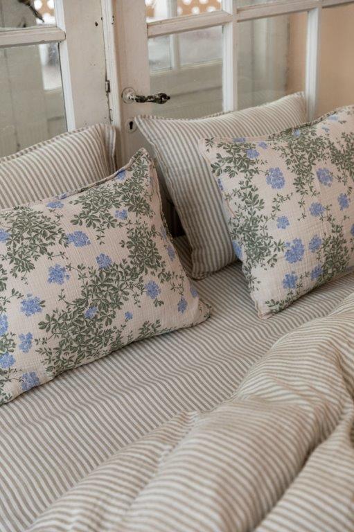 Plumbago är ett örngott från Garbo & Friends med en mjuk känsla och ett vackert blommönster. Det är tillverkat i Oeko-Tex®-certifierad bomullsmuslin som är tätt vävd med det finaste garnet, vilket ger en strukturerad och otroligt mjuk yta.