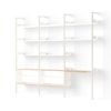 - Denna modell, Rombe konfiguration J (IF3/IF5/IF6), är ett hyllsystem i fullhöjd med tre sektioner som inkluderar hyllplan, skåp och en skrivbordssektion.