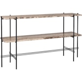 TS Console Sidobord 120x30x72 cm, Svart / Neutralt vit Travertin
