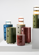 Componibili är plastserien från Kartell som formgivaren Anna Castelli Ferrieri designat. Castelli Ferrieri var en italiensk arkitekt som levde mellan åren 1918 fram till år 2006. Just att serien är gjord av plast gör att användningsområdena ökar. Du kan till exempel ha Componibili i badrummet, hallen eller varför inte sovrummet.