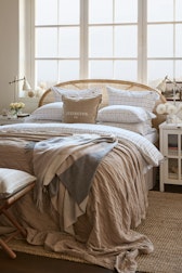 Checked Cotton Poplin Påslakan Vit / Beige / Marinblå, 220x220 cm