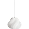 Soft Serve 01 är en pendellampa från Créme Atelier som är inspirerad av den nostalgiframkallande, lätta och luftiga mjukglassen. Det är en hållbar produkt med en modern twist, skapad för att ge glädje och unikhet till ditt hem. Lampan har en texturerad yta och mjuka luftiga former med en nyckfull illusion av fluffiga, svävande glassmoln. Soft Serve är tillverkad i Stockholm av 3D-tryckt, biologisk nedbrytbar plast med en trycktid på tretton timmar. På grund av 3D-utskriftsprocessen kan det förekomma variationer i textur och färg, vilket gör den till en unik pjäs i ditt hem.