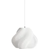 Soft Serve 01 är en pendellampa från Créme Atelier som är inspirerad av den nostalgiframkallande, lätta och luftiga mjukglassen. Det är en hållbar produkt med en modern twist, skapad för att ge glädje och unikhet till ditt hem. Lampan har en texturerad yta och mjuka luftiga former med en nyckfull illusion av fluffiga, svävande glassmoln. Soft Serve är tillverkad i Stockholm av 3D-tryckt, biologisk nedbrytbar plast med en trycktid på tretton timmar. På grund av 3D-utskriftsprocessen kan det förekomma variationer i textur och färg, vilket gör den till en unik pjäs i ditt hem.