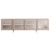 Det stora förvaringsutrymmet bakom de räfflade glasdörrarna håller dina medieprylar organiserade och dammfria, samtidigt som de är lätta att komma åt.