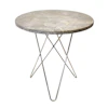 Tall Mini O Table sidobord från OX Denmarq, formgiven av Dennis Marquart. Ett elegant sidobord i lyxig marmor och stål med mjuka och runda former. Bordskivan är tillverkad i vit, svart, brun eller grå marmor medan bordsbenen är tillverkade av rostfritt stål. Tillsammans utgör materialvalen en oslagbar kombination som känns både modern och klassisk på samma gång. Låt sidobordet stå intill soffan i vardagsrummet eller intill ett större bord framför soffan, använd det som sängbord eller låt det bli ett avlastningsbord i hallen.
