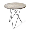 Tall Mini O Table sidobord från OX Denmarq, formgiven av Dennis Marquart. Ett elegant sidobord i lyxig marmor och stål med mjuka och runda former. Bordskivan är tillverkad i vit, grå eller brun marmor medan bordsbenen är tillverkade av svart pulverlackat stål. Tillsammans utgör materialvalen en oslagbar kombination som känns både modern och klassisk på samma gång. Låt sidobordet stå intill soffan i vardagsrummet eller intill ett större bord framför soffan, använd det som sängbord eller låt det bli ett avlastningsbord i hallen.